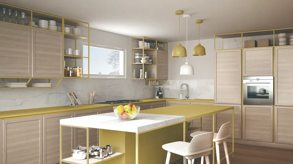 キッチンからリビング全体を見渡せる安心感と、